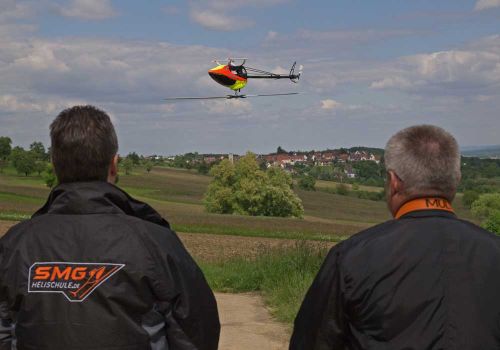 Der praktischem Flugübungen werden mit der klassischen „Lehrer-/Schüler-Methode“ durchgeführt. Dabei ist die Fernsteuerung des Lehrers mit der des Schülers über Funk verbunden. Der Trainer kann so über einen Schalter die gesamte Kontrolle bzw. einzelne Steuerfunktionen des Fluggeräts an den Schüler übergeben.  Sollte das Fluggerät in eine ungünstige Lage geraten, übernimmt der Trainer die Kontrolle und bringt es in eine für den Schüler angemessene Ausgangslage zurück. Zielgerichtete Flugübungen bilden dabei Schritt für Schritt ihre Fähigkeiten aus.